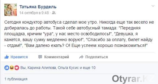 "Сам я парень сельский, у меня двое детей, кстати, жена ревнивая, это я так, к слову. Я простой парень и люблю, когда всем весело. Я всегда считаю так, если я подниму настроение хоть одному человеку, ну, вот откуда мы знаем, может, из-за этого у него в жизни все поменяется к лучшему. Но, с другой стороны, это и плохо, в нашем автобусе всегда много народу, и приходится веселить уже большое количество людей. Я хочу сказать спасибо всем , кто рассказал обо мне, даже не думал, что это тронет людей. Раз так все пошло, я, наверное, стану звездой и буду выступать на разных маршрутах!" - пошутил Мадияр Суранбаев.