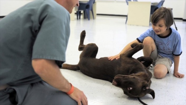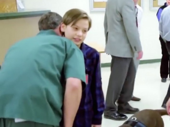 Встреча с убийцей в тюрьме поначалу казалась 9-летнему Заку кошмаром. Но после первого же сеанса он начал ходить к Крису с удовольствием - собака и мальчик сразу подружились.