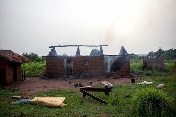 Дом, где бойцами группировки "Селека" были убиты трое христиан - двое мужчин и женщина - по подозрению в принадлежности к "Анти-Балаке" в Гулинге недалеко от Гримари.