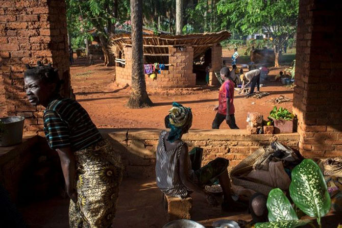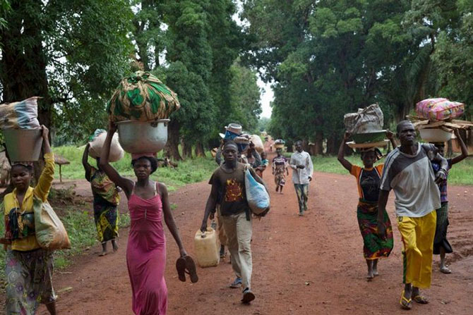 Христиане, нашедшие приют в католической миссии, возвращаются в свои дома в перерыве между столкновениями между группировками "Селека" и "Анти-Балака" в Гримари.
