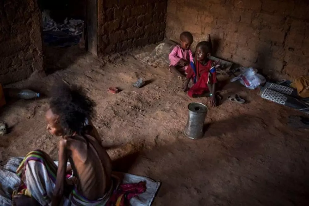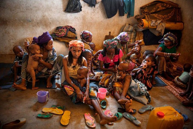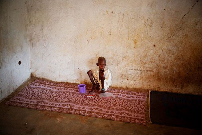 Мальчик фула по имени Закария, страдающий от недостаточности питания, находится в приюте возле мечети в мусульманском анклаве Begoua.
