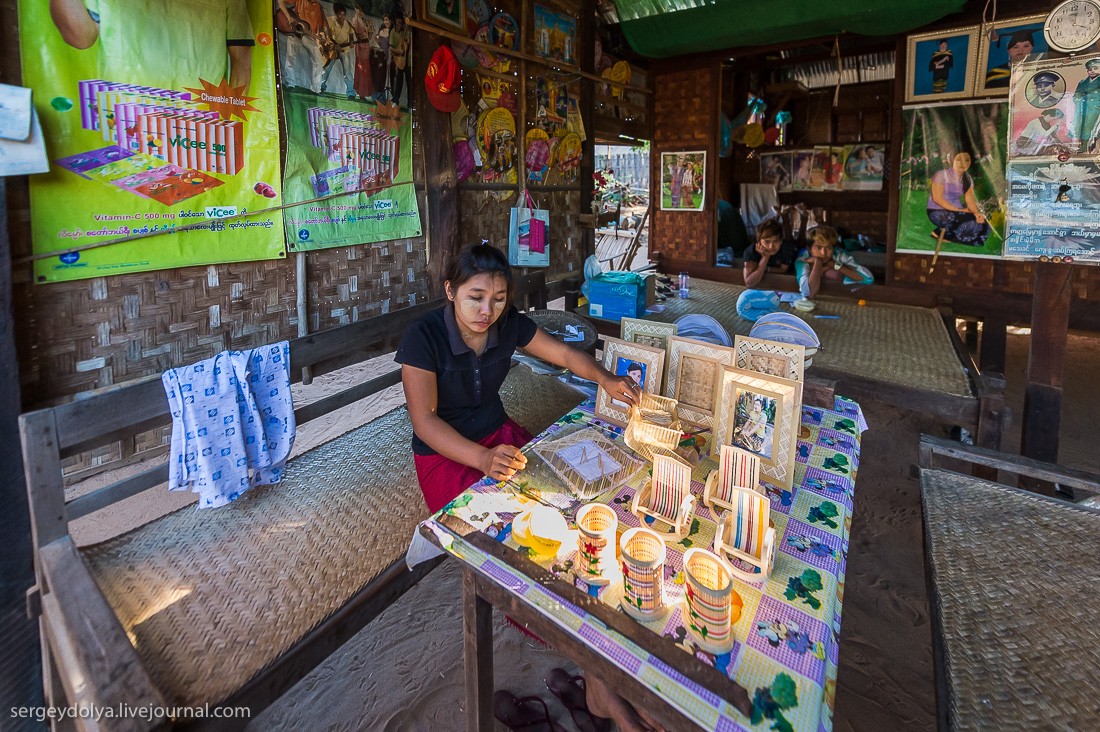 Как же так получилось, что в стране, где большая часть жителей живет на пять долларов в месяц, возник этот оазис красоты и шика? Очень просто: днем в Багане стоит адская жара и жесткое солнце (даже в зимний сезон). Туристы изнывают от безделья и скуки, ожидая вечера. Местные смекнули, что негоже им валяться без дела, и стали зазывать к себе домой любопытствующих за мелкий прайс. Со временем дело начало принимать систематический характер, и продвинутые бирманцы стали открывать небольшие ремесленные производства. Появились сувенирные лавочки, домашние магазинчики и все в таком духе. Доходы от туристов оседают в деревне, и в последние годы, когда поток туристов в Бирму сильно вырос, жители ничем не примечательной деревушки зажили на широкую ногу. Обычно за экскурсию с туристов дерут целых пять долларов, но сегодня для своих читателей я проведу ее совершенно бесплатно. Гулять - так гулять!"