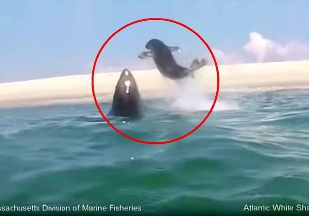 Эти удивительные кадры были сняты в десяти метрах от берега сотрудниками Массачусетского отдела рыбного хозяйства.