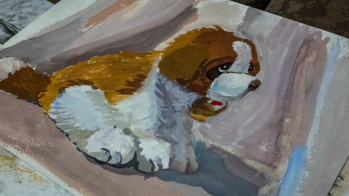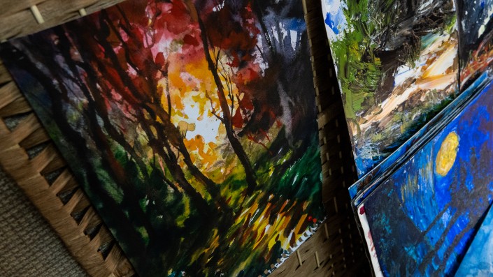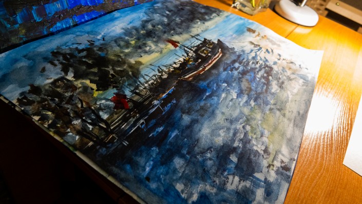 Сегодня Давид автор стольких работ, что можно сбиться со счету. В доме лежат огромные коробки с картинами. Они наполнены и теплыми воспоминаниями. Посмотреть все рисунки мы не успели, но художник согласился нарисовать и для нас.