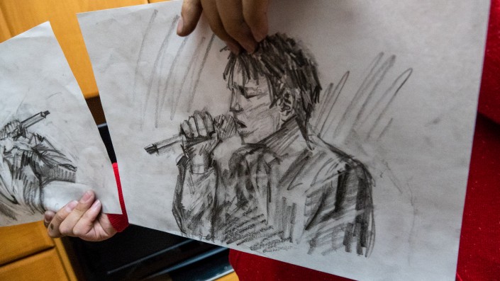 Собеседник из папки достает наброски с певцом Димашем Кудайбергеном. "Обожаю слушать хорошую музыку. Мне нравится, как поет Димаш. Я нашел его фотографии и сделал несколько набросков с его силуэтом. До этого писал участника группы A'Studio Байгали Серкебаева, подарил портрет кинорежиссеру Акану Сатаеву. Родных люблю рисовать. А знакомых еще не приходилось", - делится алматинец.