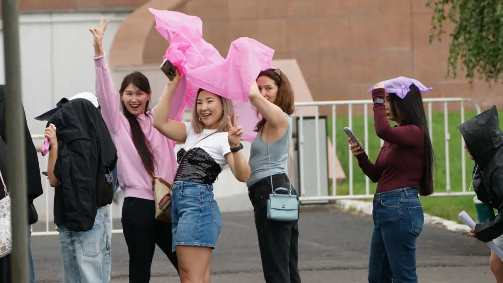 Гостей начнут пускать на концерт за несколько часов до начала шоу, но многие пришли задолго до этого. И именно в этот момент столичных фанатов настигла капризная астанинская погода.