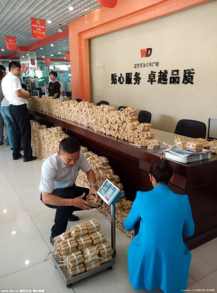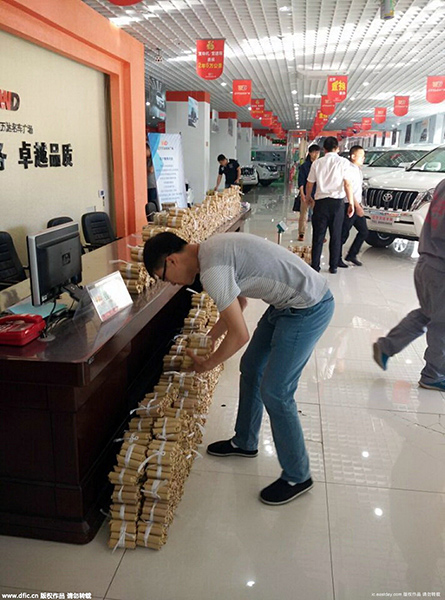 Китаец расплатился мелочью за автомобиль стоимостью 110 тысяч долларов © liaoning.lnd.com.cn
