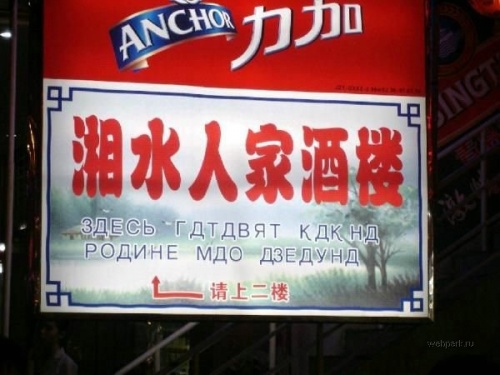 Русский язык - один из самых трудных в мире, особенно сложно его осваивать китайцам из-за кардинальных различий в языковой системе. Но жизнь на границе России и Поднебесной диктует свои правила: для того, чтобы наладить торговлю, китайцам приходится худо-бедно изъясняться на великом и могучем. Приграничные города пестрят вывесками на "китайском русском", и смотреть на них без смеха, удивления или ужаса просто невозможно. AdMe.ru собрал шедевры перевода с китайского на русский. Они точно смогут поднять вам настроение.