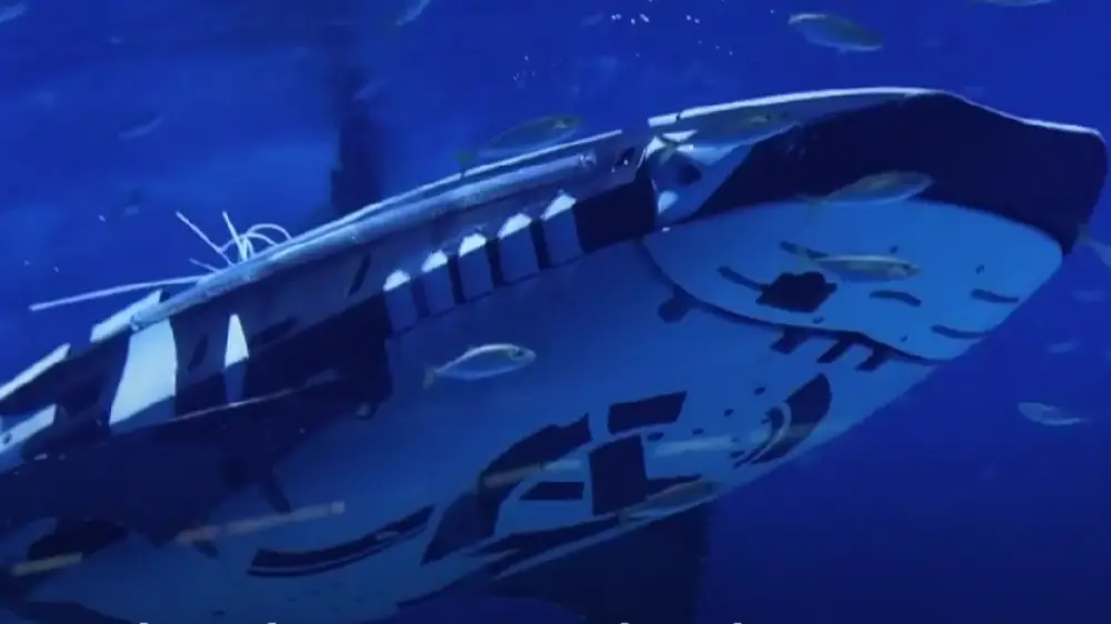 Отмечается, что это прорыв в сфере современных морских технологий. Почти пятиметровое 350-килограммовое бионическое чудо способно с невероятной точностью воспроизводить движения настоящей китовой акулы, включая плавание, повороты, погружение и даже движения рта.