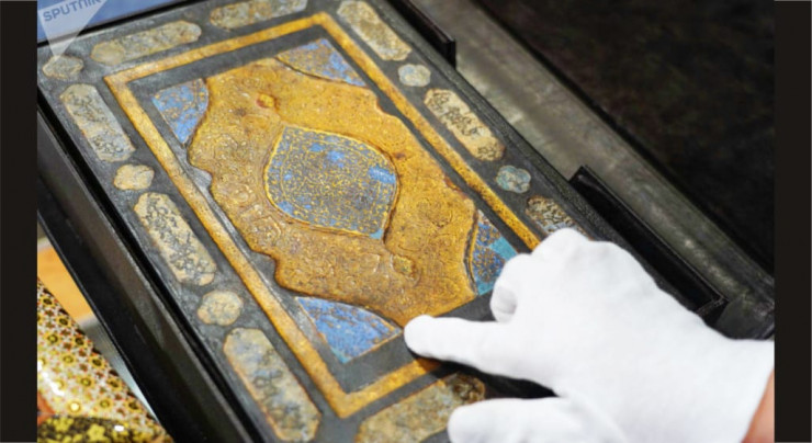 Настоящее драгоценное издание - рубайяты Омара Хайяма в кожаном итальянском переплете, филигранно украшенные серебром и цветными фианитами. Таких поэтических сборников в мире 12, в нашей библиотеке хранится второй экземпляр.