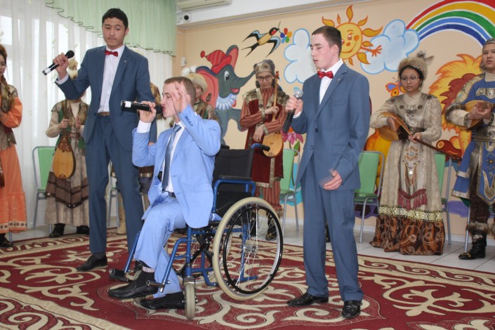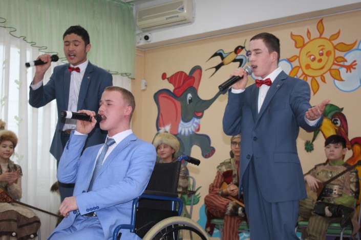 "Шааа-пааа-лааақ! Шапалақ қайда!" - задорно выкрикнул своим зрителям Илья Мугайских - 16-летний парень в инвалидной коляске. У него несколько сложных диагнозов, и он с четырех лет проживает в Центре оказания специальных социальных услуг № 2 (Алматы). Молодой человек обладает невероятно сильным голосом, ну а его манере держаться на сцене позавидуют даже певцы-профессионалы. Вчера Илья выступал с двумя другими ребятами перед особенными детками из своего родного Центра.
