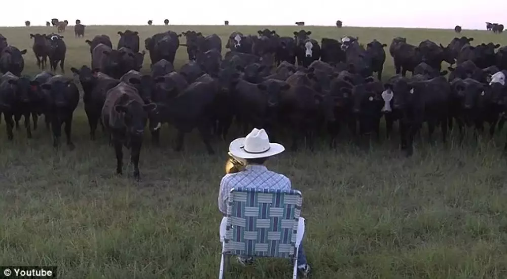 Видеоролик, на котором коровы приходят послушать, как их хозяин играет на тромбоне, стал хитом YouTube. За неделю ролик набрал 4,5 миллиона просмотров, сообщает Metro.
