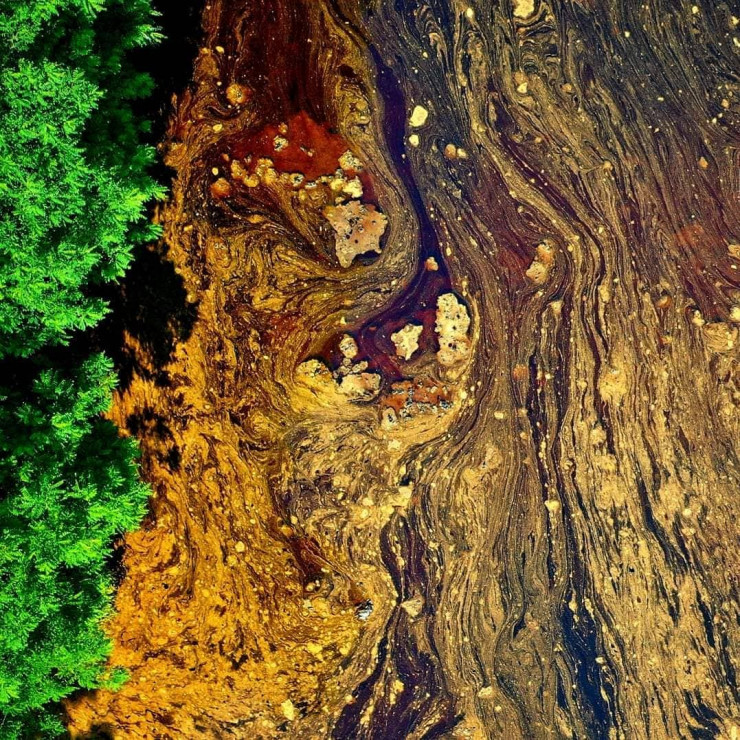 Река, загрязненная токсичными отходами добычи меди в Румынии.