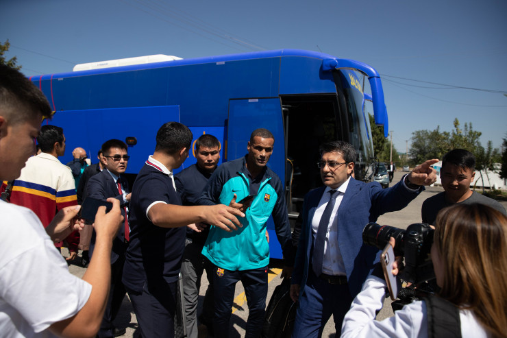 В рамках открытия первой в Центральной Азии академии "Барселоны" прилетели десятки именитых игроков. Среди них были Карлес Пуйоль, Хавьер Савиола, Эдгард Давидс, Людовик Жюли, Жулиано Белетти, Хуан Пабло Сорин и Ривалдо, также президент клуба Жоан Лапорта и другие известные футболисты прошлых лет.
