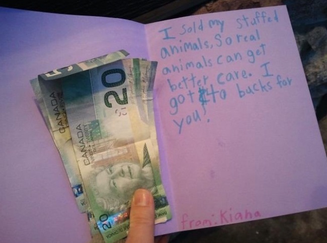"Я продала моих игрушечных зверюшек, чтобы за настоящими лучше ухаживали. Вот мои 40 долларов". © imgur.com