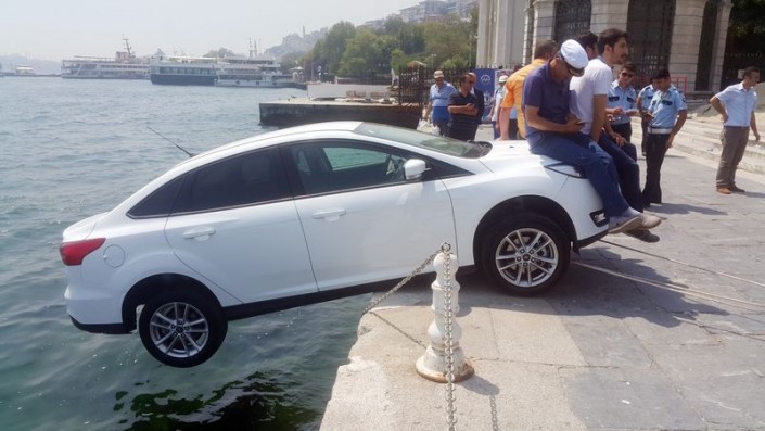 Туристы, посещавшие музей в Стамбуле, забыли поставить свой авто "на ручник". Благодаря группе местных жителей автомобиль был спасен от падения в море.
