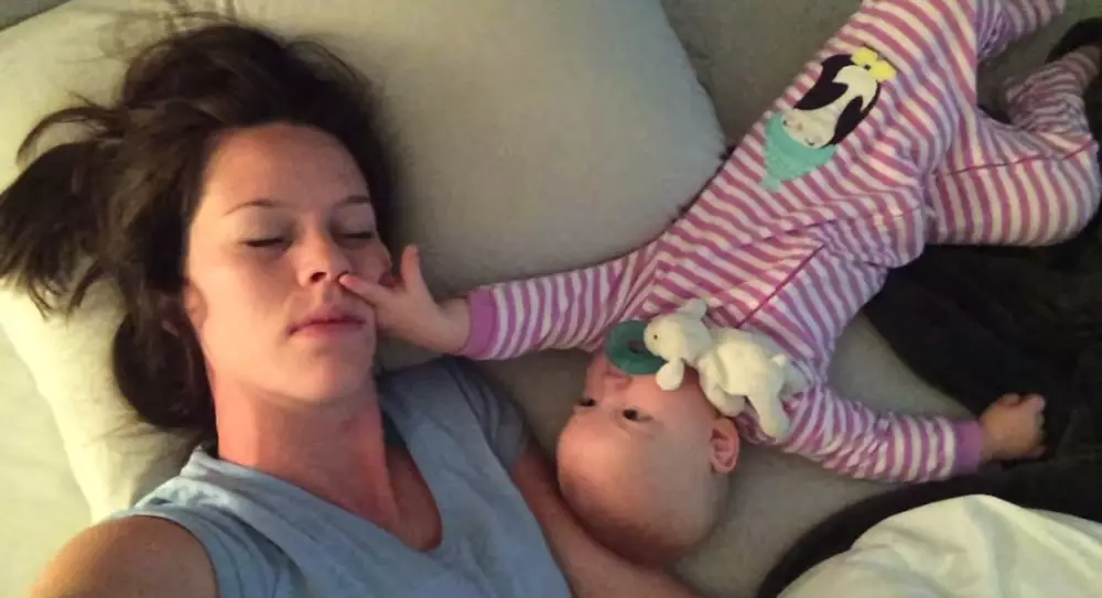 На видео запечатлено, как малышка по имени Эллиа предпринимает различные попытки разбудить свою маму, которая в тот момент лишь притворялась спящей и вела съемку. Девочка тянула пряди волос Эстер, тыкала ей пальцем в закрытый глаз, лежала на ней, целовала в нос.