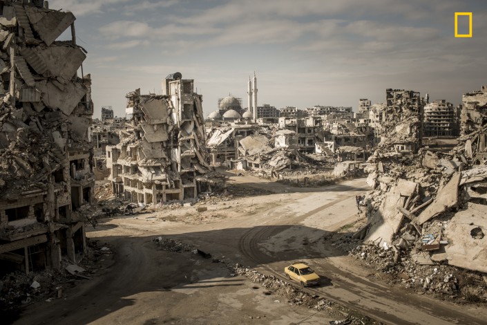 Фотограф находился в командировке в Сирии, чтобы задокументировать текущую ситуацию в крупных городах. "Когда я впервые попал в район Халидия в городе Хомс, я был в шоке. Чтобы сделать это изображение, я взобрался на руины бывшего дома, в котором было много самодельных взрывных устройств".