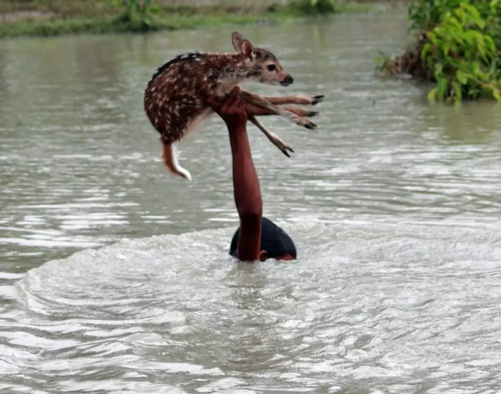 Храбрый мальчик в Бангладеш рисковал собственной жизнью, чтобы спасти олененка во время паводка.