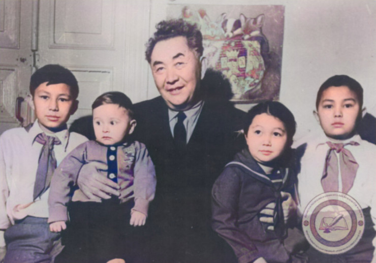 Каныш Сатпаев с внуками. ©ЦГА РК