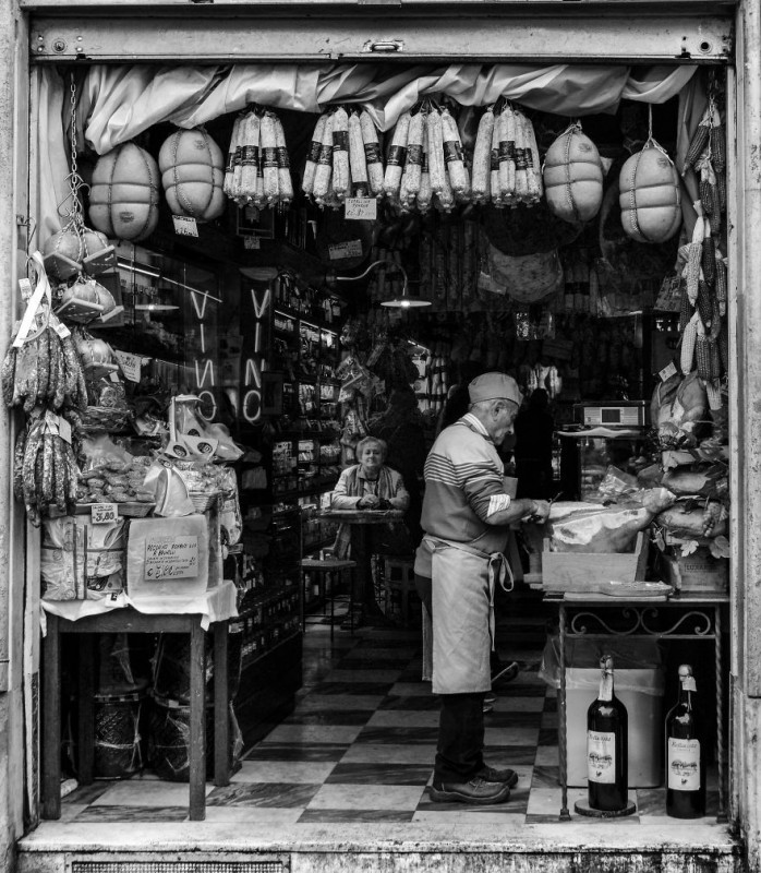 Женщина ждет свой заказ в колбасной лавке на площади Ротонда, Рим. @Paulaaranoa, Паула Араноа