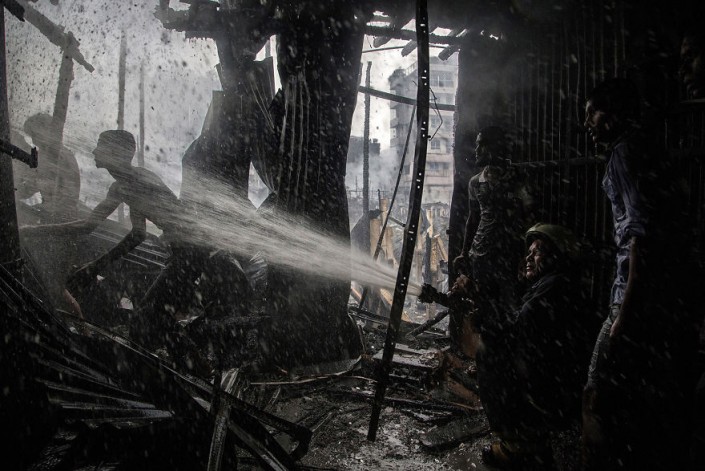 Местные жители и пожарные борются с огнем после замыкания электропроводки в Бангладеш. @ Tanveer.rohan (Бангладеш), Танвир Рохан