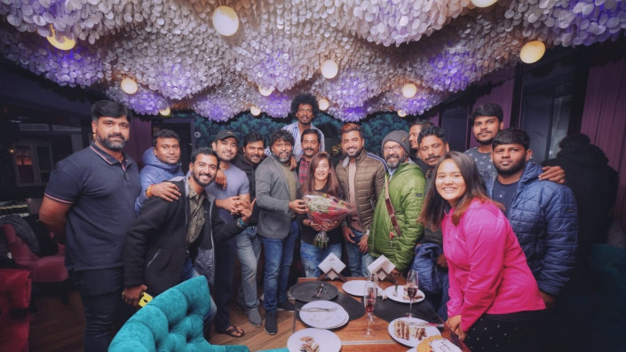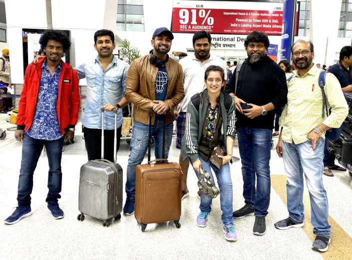 Арун Виджай, Навин Мохаммед Али, Акшара Хасан (в центре) и съемочная группа. Фото Twitter/ @ArunVijay