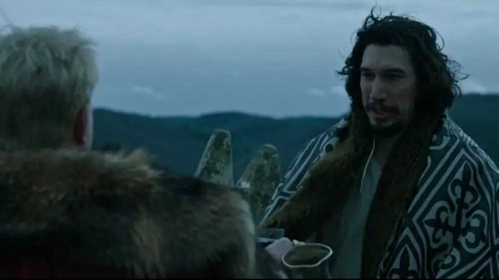 На 49-й минуте исторической кинокартины "Последняя дуэль" главные герои - граф д'Алесон (Бен Аффлек) и рыцарь Жаком Ле Гри (Адам Драйвер) - беседуют на вершине крепости. Верхняя одежда Драйвера с орнаментами, обшитая по краям мехом, и вызвала ажиотаж. Пользователи удивлены, как похожий на казахский национальный орнамент узор попал в кадр и намеренно ли такое произошло.