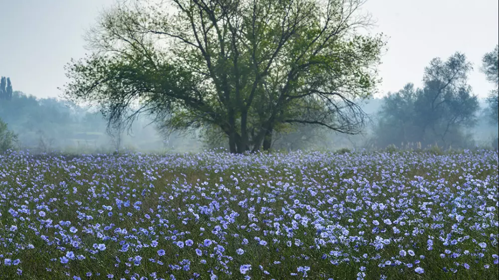 В этот раз он сделал снимки в Алматинской области, недалеко от поселка Жетыген. Цветущие поля льна также сейчас можно встретить по Капшагайской трассе, близ поселка Коктерек. Завораживающими фото он поделился на своей странице в Instagram.