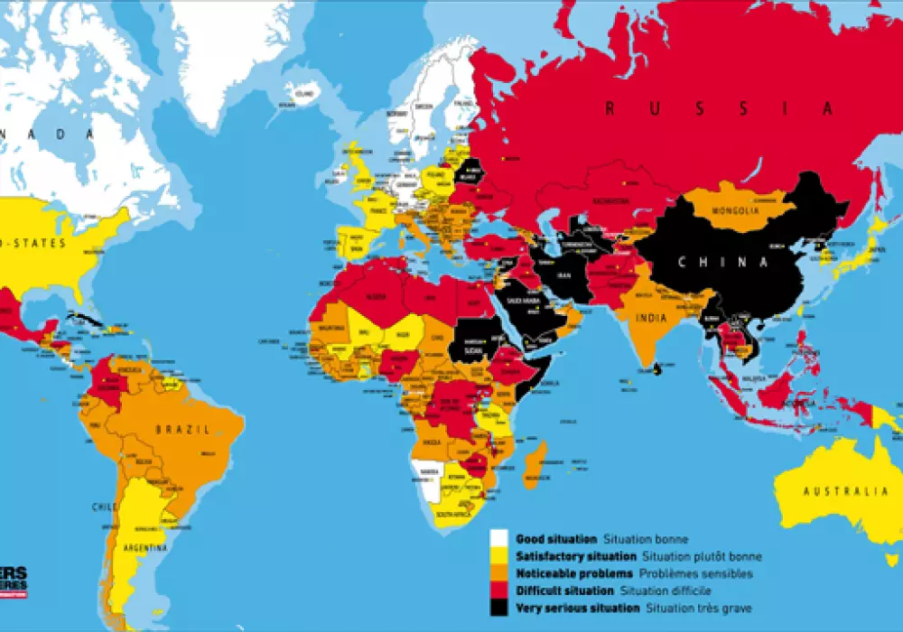 Не менее любопытен и этот показатель, который ежегодно оценивает по всему миру организация "Репортеры без границ". Для этой цели она высылает опросы в мировые новостные агентства, а также рядовым журналистам, корреспондентам, исследователям, юристам и активистам в сфере защиты прав человека. После чего специалисты оценивают индекс свободы прессы в той или иной стране. В 2014 году самой свободной оказалась "гей-Европа": Финляндия, Норвегия, Дания, Нидерланды, Швеция. Казахстан занял 160 место, Россия получила 152 место (из 180).