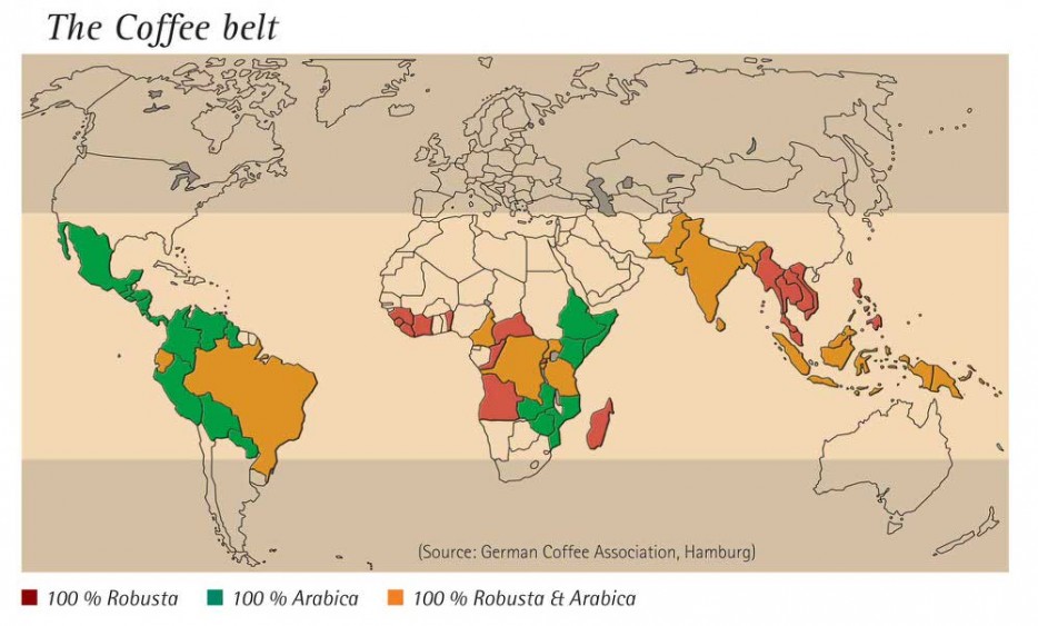 Весь выращиваемый на планете кофе происходит из широт, получивших название "Кофейный пояс"