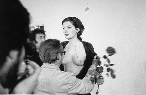 Марина Абрамович во время своего перформанса "Ритм 0". Фото © Hotshowlife.