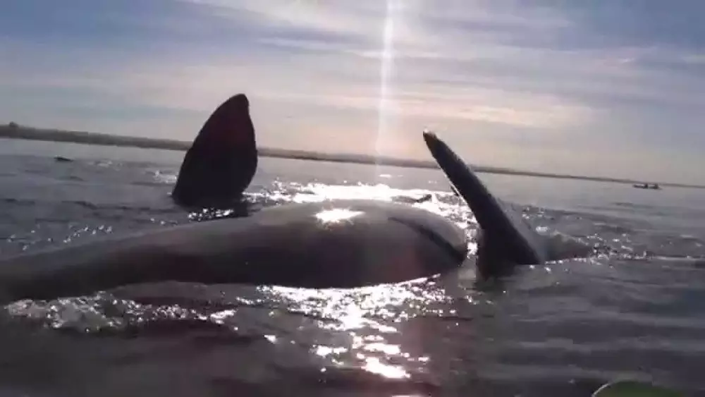 Видеоролик, на котором огромный кит поднимает каяк с людьми на своей спине, стал хитом YouTube. Необычный случай произошел у побережья Патагонии недалеко от города Пуэрто-Мадрин.