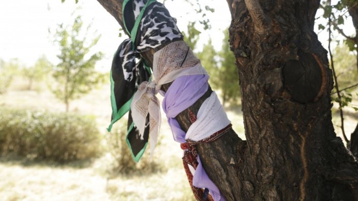 Женщины после совершения паломничества привязывают свои платки к дереву неподалеку от мавзолея. Говорят, что именно это дерево живет дольше других в этом засушливом регионе.