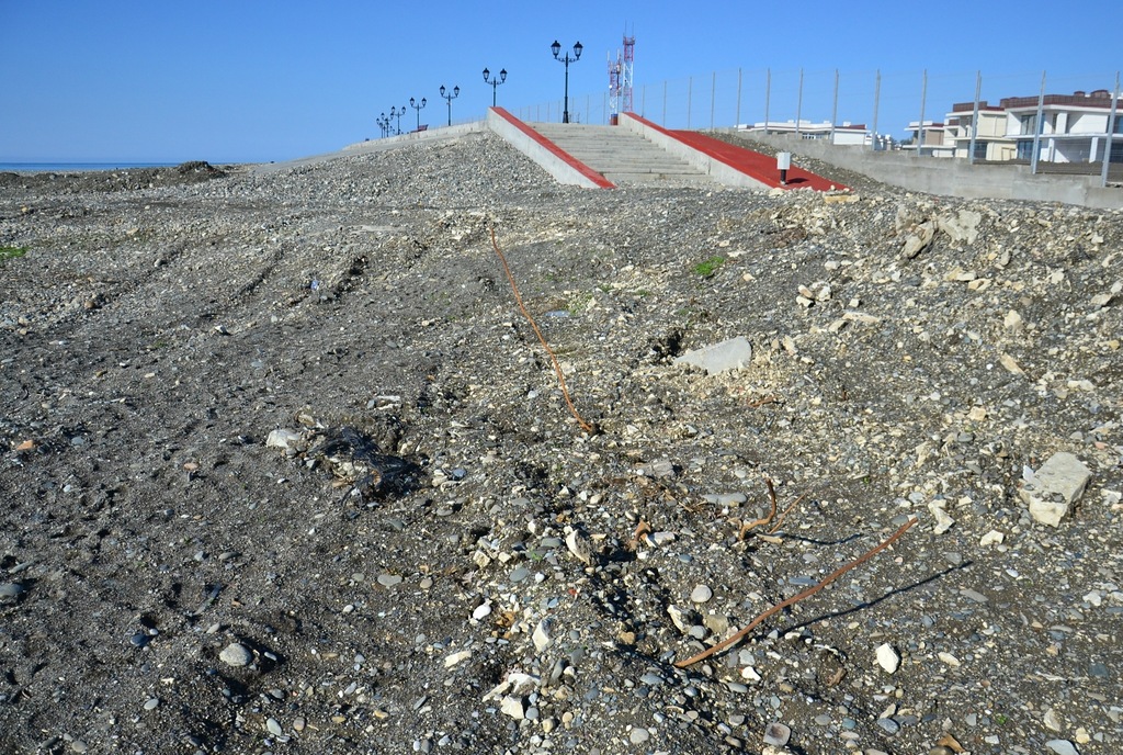 Здесь начинается набережная. Из-под земли торчит ржавая арматура.