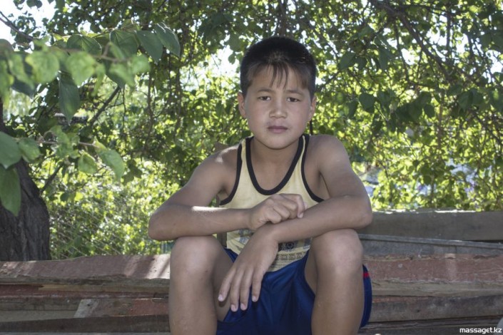 Следующий участник - Олжас. Он этим летом отдыхает у бабушки. Ему 10 лет.