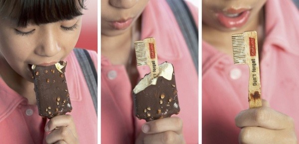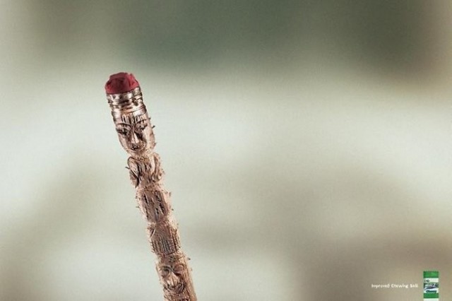 Эта реклама призывает чистить зубы после еды. Желательно щеткой. Не палочкой.