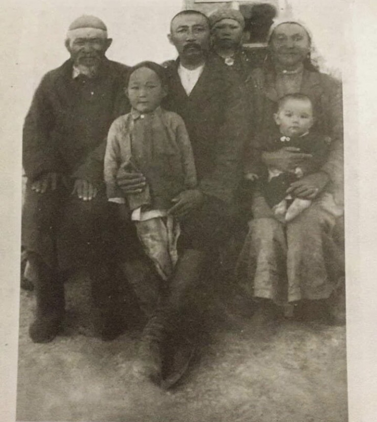Едил с отцом, рядом брат отца Белтай и его жена Бикамал, а также с братом Каби и сестрой Зейнеш