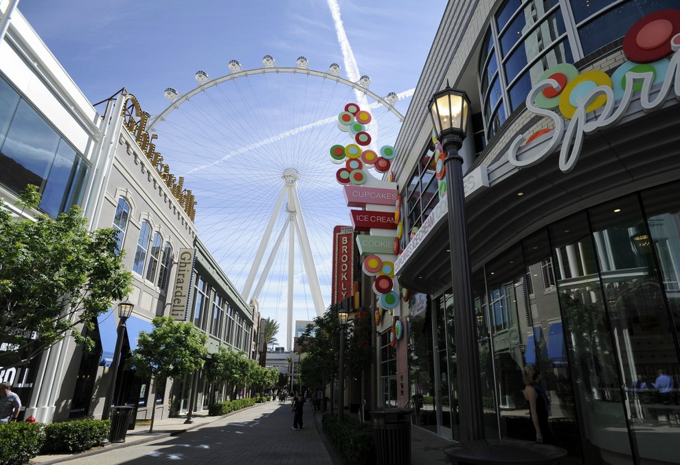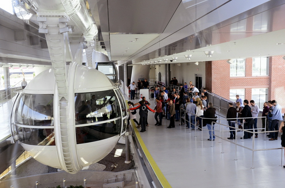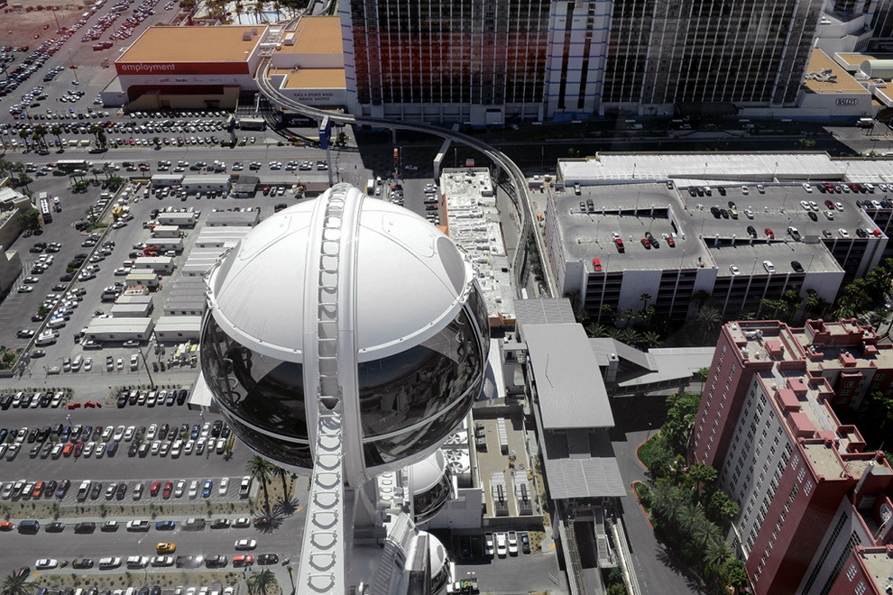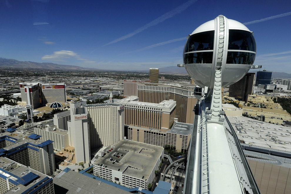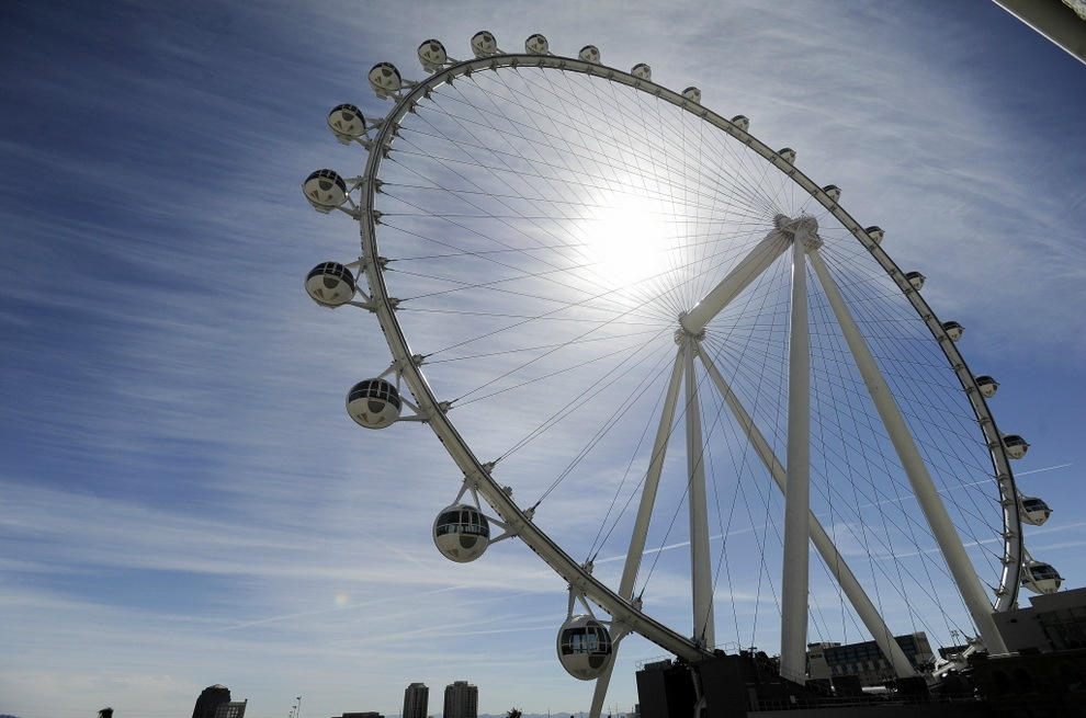 В Лас-Вегасе открылось самое высокое на планете колесо обозрения. Называется оно - HighRoller, его высота - 165 метров. Колесо состоит из 28 стеклянных кабин с кондиционерами, в каждой помещается 40 человек. Полный оборот гигантское колесо совершает за полчаса. Билеты стоят 24,95 доллара днем и 34,95 - ночью.