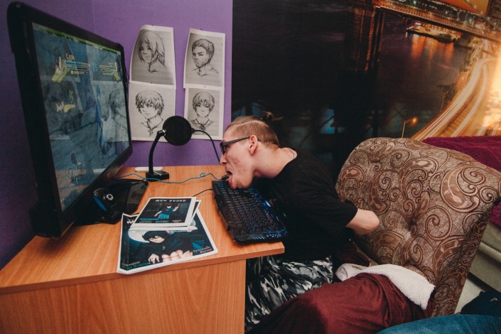 В 17 лет Игорь очень сблизился с одной девушкой в соцсетях, которая вдохновила его создать нечто свое. Кстати, из-за недуга парню приходится управлять компьютерной мышкой подбородком и языком.