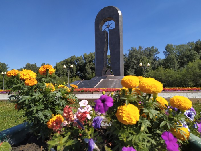 На Семипалатинском ядерном полигоне до 1989 года было произведено почти 500 ядерных испытаний. Уникальный памятник жертвам полигона установлен на острове в Семее и называется "Сильнее смерти". Наверху монумента показан взрыв бомбы, а внизу мать, укрывающая свое дитя от беды.
