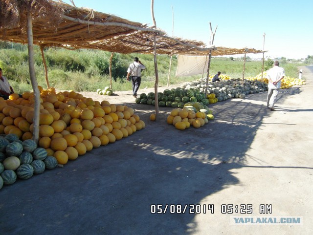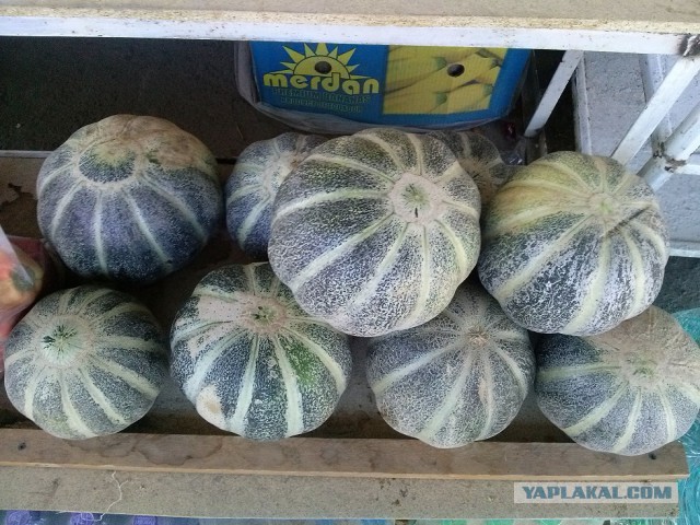 По пути берут дыни. Вообще на юге я столько сортов дынь и арбузов сроду не видел. Любых форм и расцветок.
