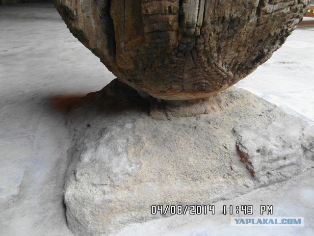 Чтобы амортизировать при колебаниях почвы колонны стоят на верблюжьем войлоке, который окаменел, но своей функции, видимо, не потерял.