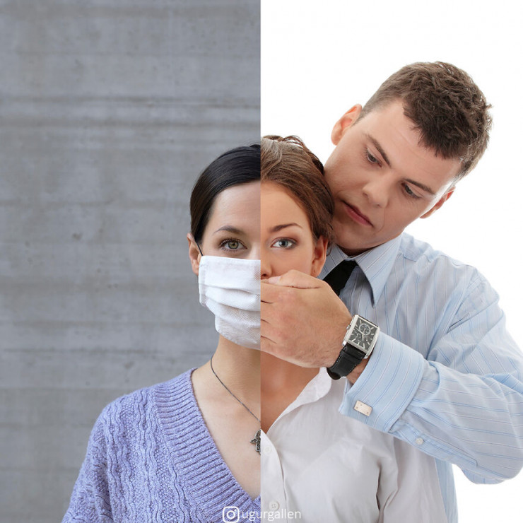 "Я создаю коллажи из двух изображений, соединяя работы самых бесстрашных современных фотожурналистов. Пытаюсь поднять важные проблемы, с которыми сталкивается мир: социальная несправедливость, войны, изменение климата и т. д. Стремлюсь показать контрасты между двумя разными мирами, в которых мы живем", - говорит Угур.