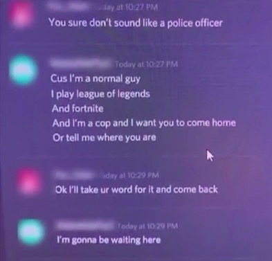 - Потому что я обычный парень. Я играю в League of Legends и Fortnite. А еще я полицейский и хочу, чтобы ты вернулся домой. Или скажи мне, где ты сейчас?