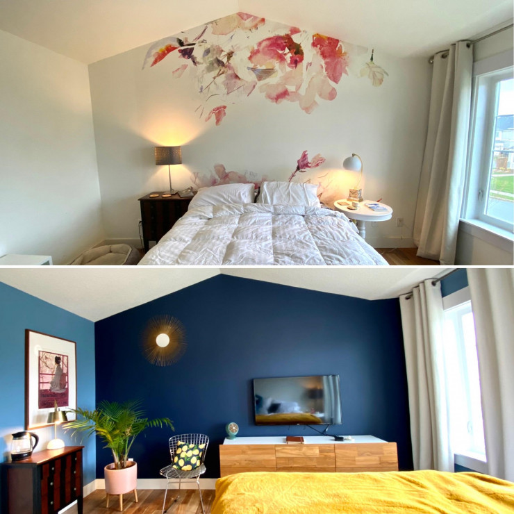 Другой пользовательнице Сети в унылые дни безвылазного нахождения дома захотелось добавить яркости интерьеру своей спальни. Новый дизайн сделал комнату визуально больше.