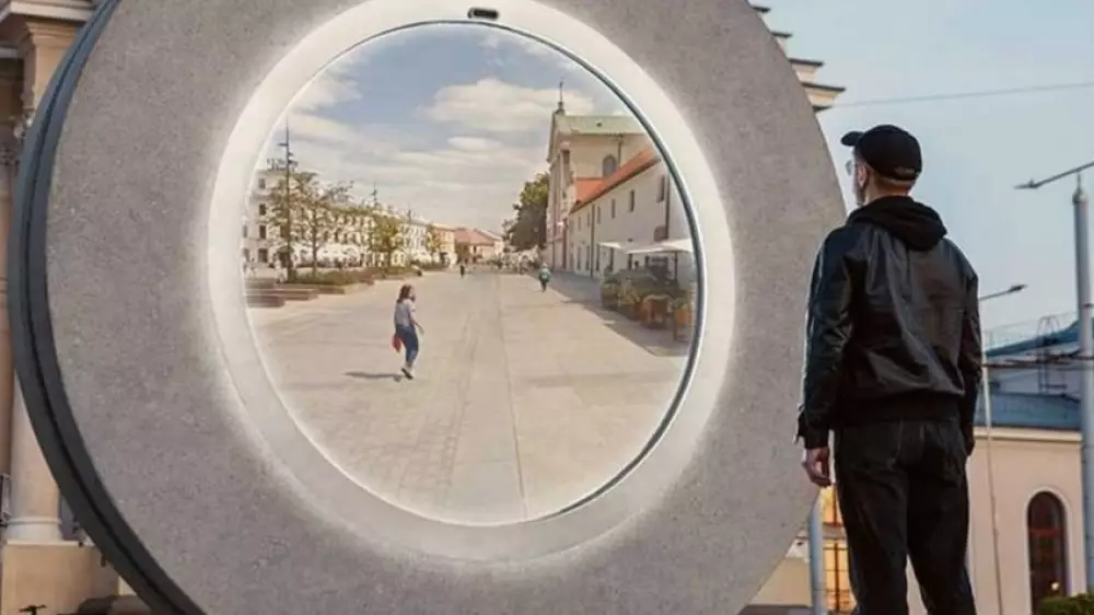6. И еще из актуального: в столице Литвы Вильнюсе установлен "портал" в другой город - Люблино в Польше. Как отмечают авторы проекта, два больших экрана помогают жителям двух городов оставаться на связи в период пандемии. Однако проект с большими футуристическими круглыми экранами был разработан и реализован в течение пяти лет, задолго до прихода коронавируса. По задумке авторов, "цифровой мост" между Литвой и Польшей объединяет людей разных культур и побуждает их переосмыслить смысл единства.