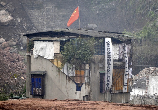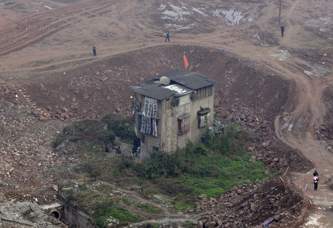 Власти муниципалитета Чунцин подготовили площадку для строительства современного квартала, но один домовладелец отказывается уезжать.