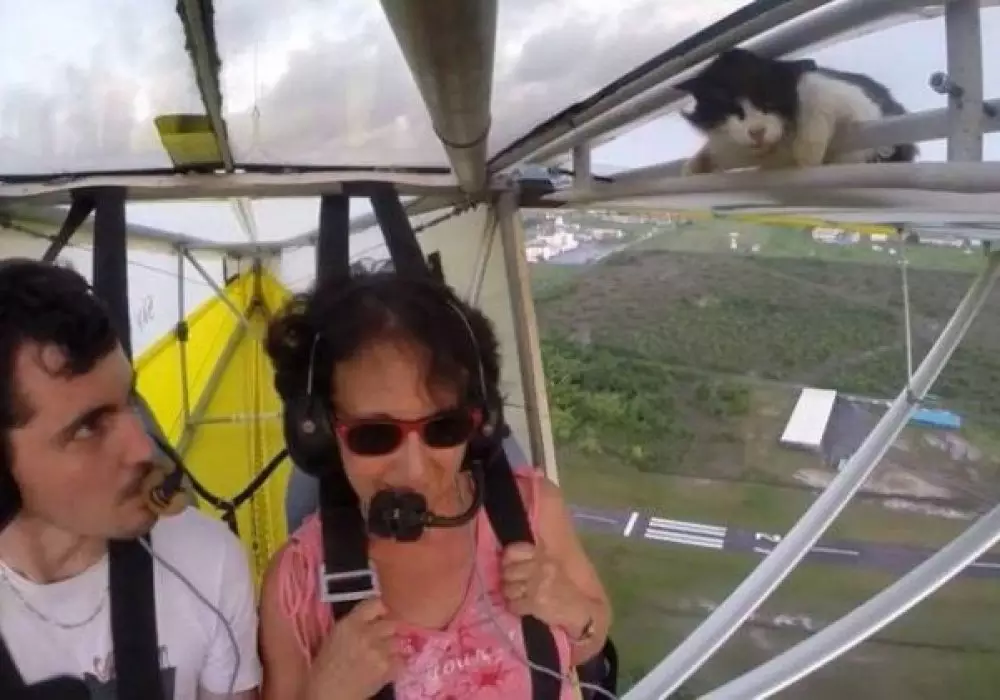 Как только летательный аппарат набрал высоту, оказалось, что на борту присутствует еще один пассажир. Совершив круг в воздухе, аппарат приземлился, и уже успокоившийся кот смог снова оказаться на земле.