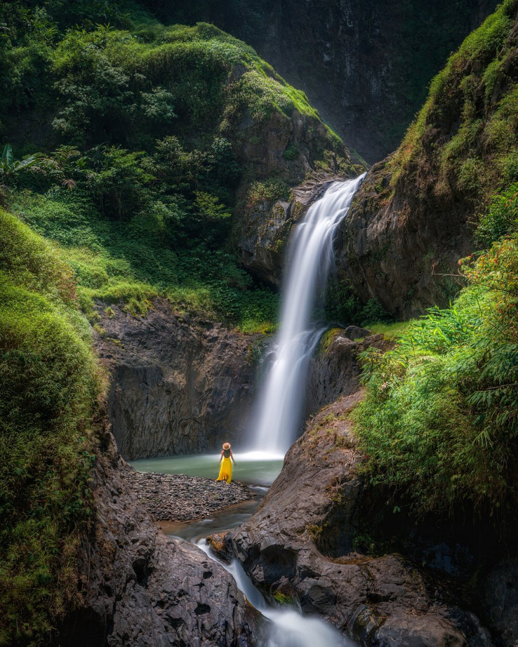 "Водопад находится в укромном месте леса. Мы прошли около 45 минут в одну сторону по водному оросительному каналу под холмом, по пути любуясь красивым пейзажем рисовых полей. Только гид мог привести нас к водопаду. Вверх и вниз по холму мы наткнулись на гигантскую скалу, и сначала нам не захотелось ее обходить. Но мы это сделали и увидели красивый водопад. Замечательное путешествие, чтобы увидеть эту скрытую природную красоту", - подчеркивает ©liaindriani.